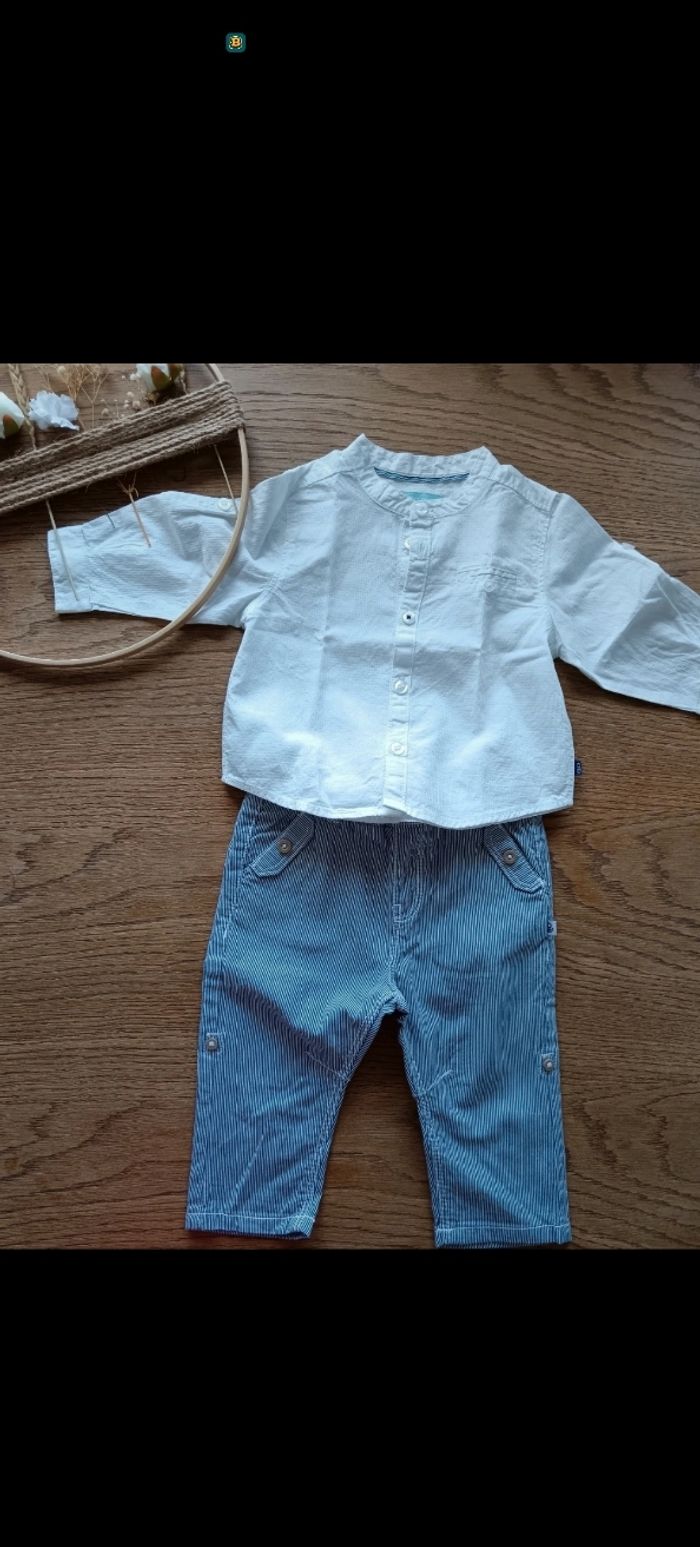 Ensemble garçon 6 mois Obaibi pantalon élastique à la taille, chemise col rond en très bon état