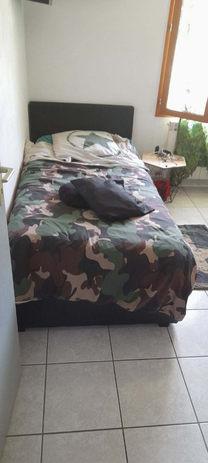 Bonjour Je vend le lit de 1 place de mon fils , en bon état . Nous le changeons car nous prenons la taille au dessus , A venir chercher sur places