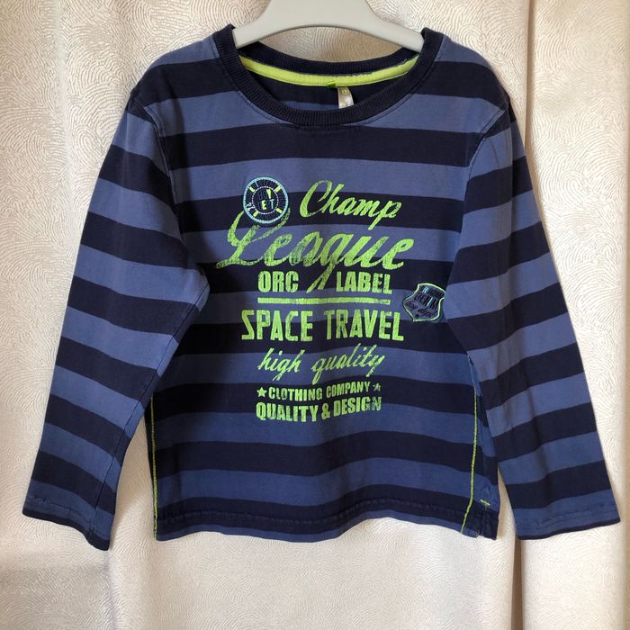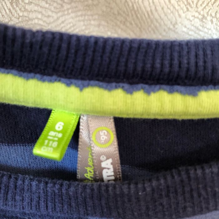 Joli t-shirt manches longues À rayures bleu et bleu Marine Imprimé devant vert vif Taille 6 ans Orchestra