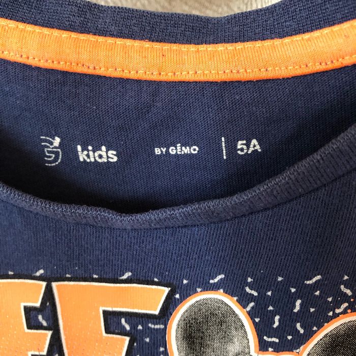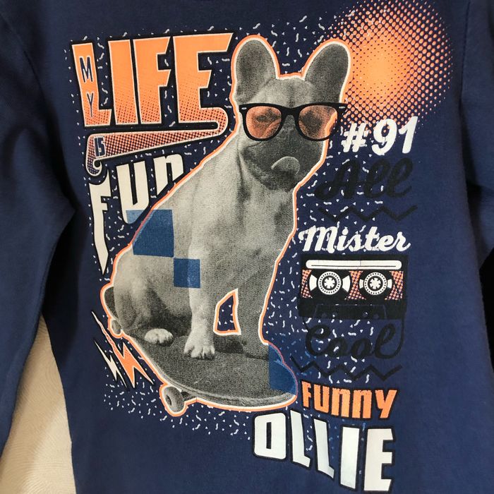 T-shirt manches longues bleu foncé et orange Imprimé bouledogue Taille 5 ans Gémo