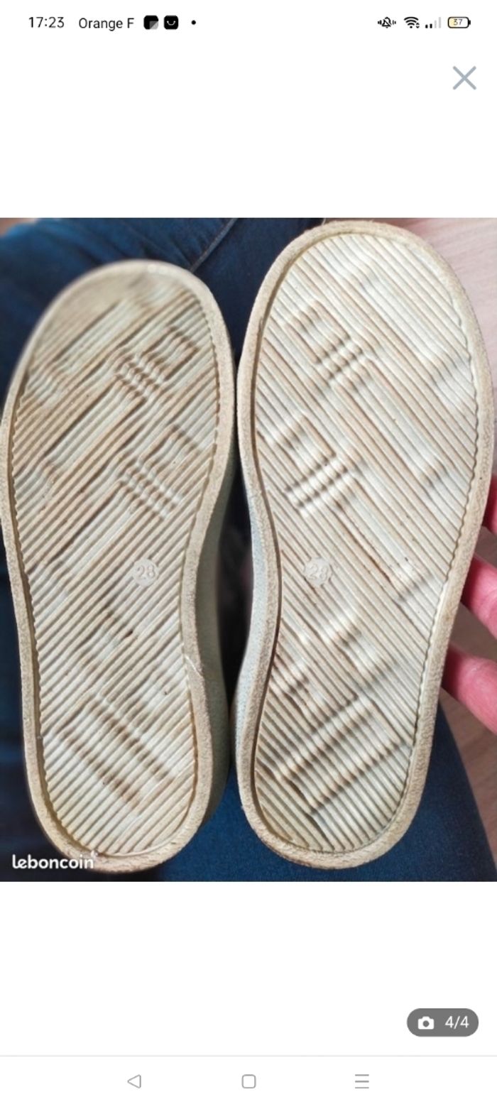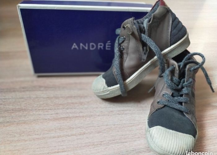 chaussures André neuves. Pointure 28 Elles ont été portées une seule fois pour les essayer qqs minutes à l'extérieur. Sur la boîte d'origine on voit encore le prix neuf d'achat qui était de 49 euros. maison sans animaux et non fumeurs.