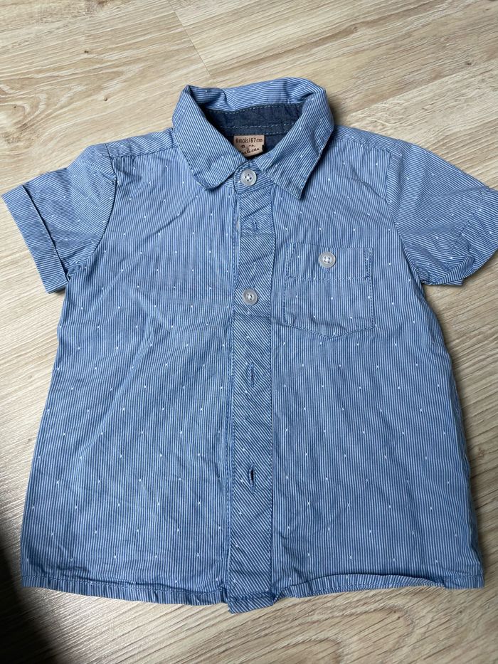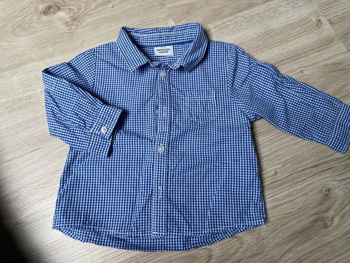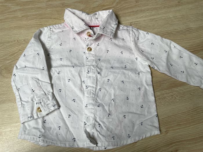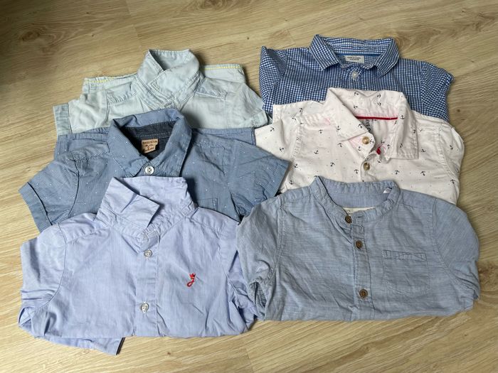 6 chemises Marques diverses: z, boîte à malice, jacadi, Zara, tape à l’œil Très bon état . Sur la chemise blanche, le liseret rouge a déteint (dommage) . 6 mois