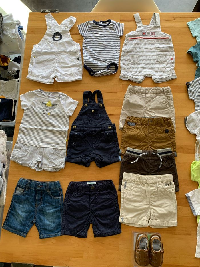 Lot de vêtements été garçon 6 Mois 32pièces 3 salopettes 1 bodie 2 Combi short. 1 short en jean 7 Shorts 8 t-shirts 2 polo 3 pyjashort 1 débardeur 1 short de bain 2 shorty de bain 1 paire de sandalette Plusieurs marques : Obaïbi, tape-à-l’œil, Kiabi…