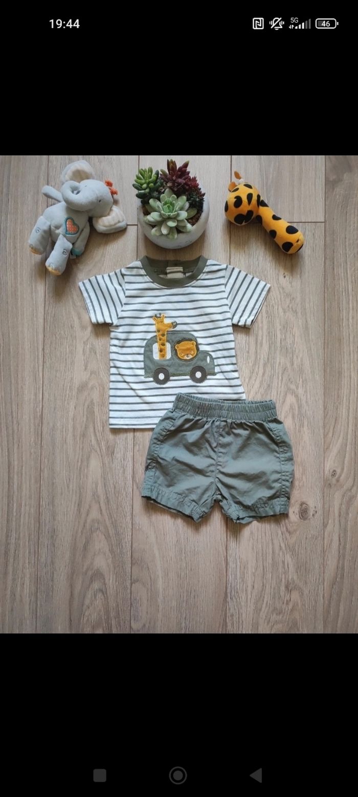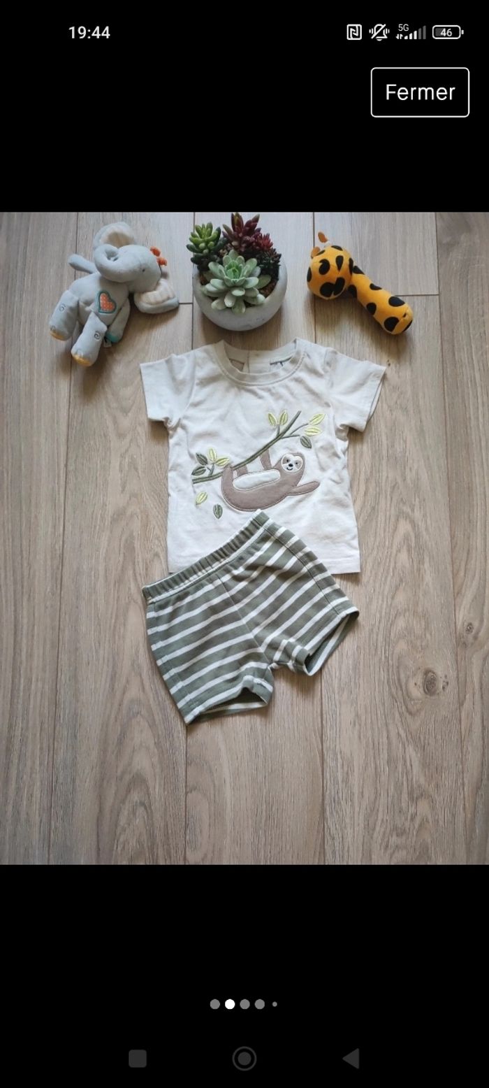 Lot de 2 ensembles T shirts+short en très bon état. Taille 3 mois Marque PLUS