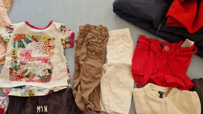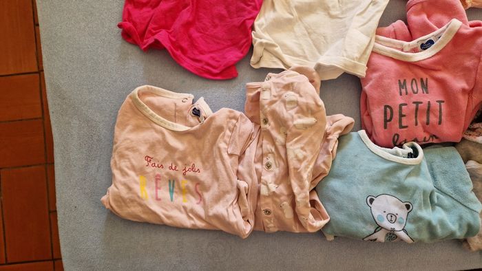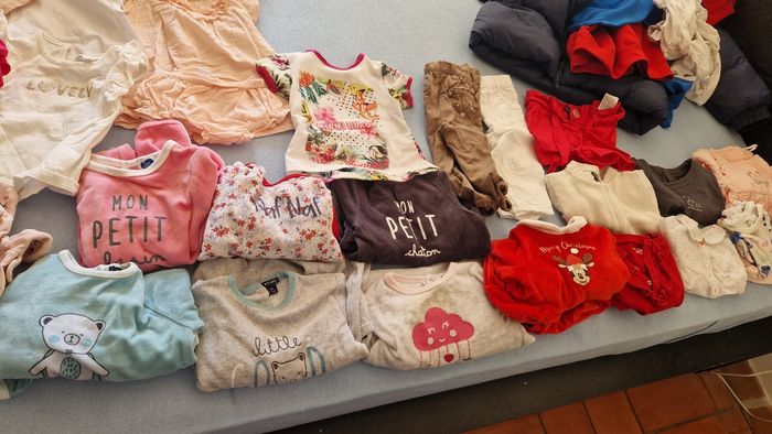 A vendre tout le lot pour bébé fille de 9 mois, la plus pars des tee-shirts et pyjama sont neufs ainsi que le gilet rouge Ralph laurens
