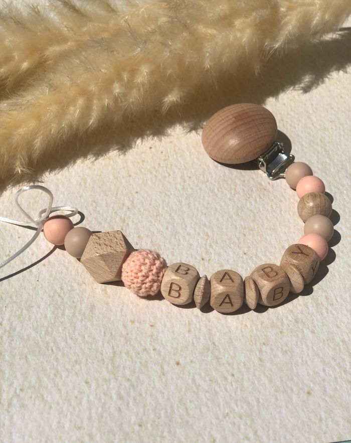 Attache tétine personnalisable Fait main S’adapte à tout type de tétines, pour les tétines MAM merci de me prévenir lors de la commande afin que je puisse ajouter un adaptateur Pour plus de renseignements n’hésitez pas à me contacter ☺️ Mon Instagram : baby.n.crea