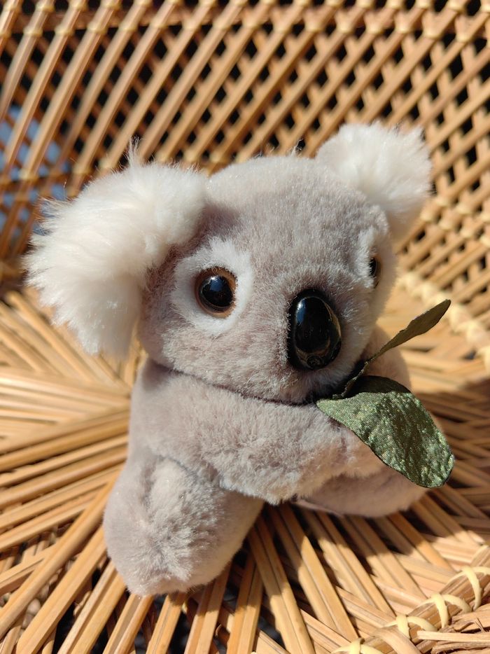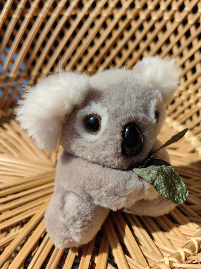 Petite peluche Koala qui tient une feuille d'eucalyptus Gris, blanc et vert Très bon état (seule l'étiquette est partiellement effacée) Il vient d'un Zoo mais impossible de me souvenir lequel (Thoiry, Beauval, Vincennes, Moselle, Touroparc, ou PAL).