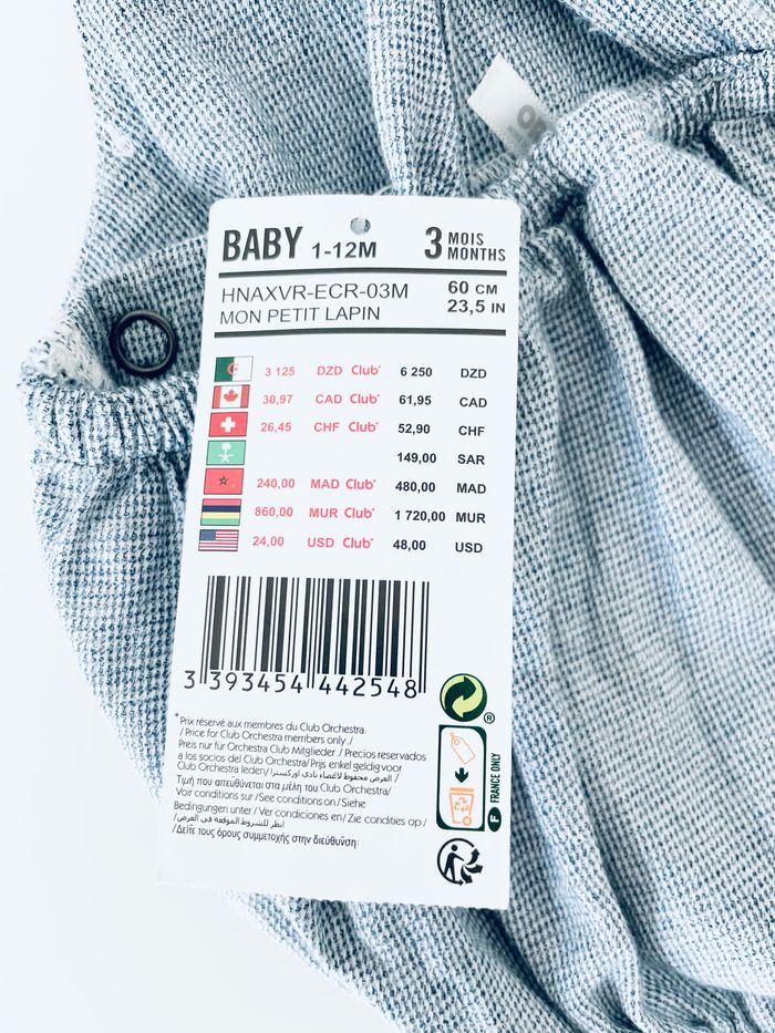Magnifique salopette courte orchestra Vraiment adorable Taille 3 mois Article neuf avec étiquette Prix d’achat 48€