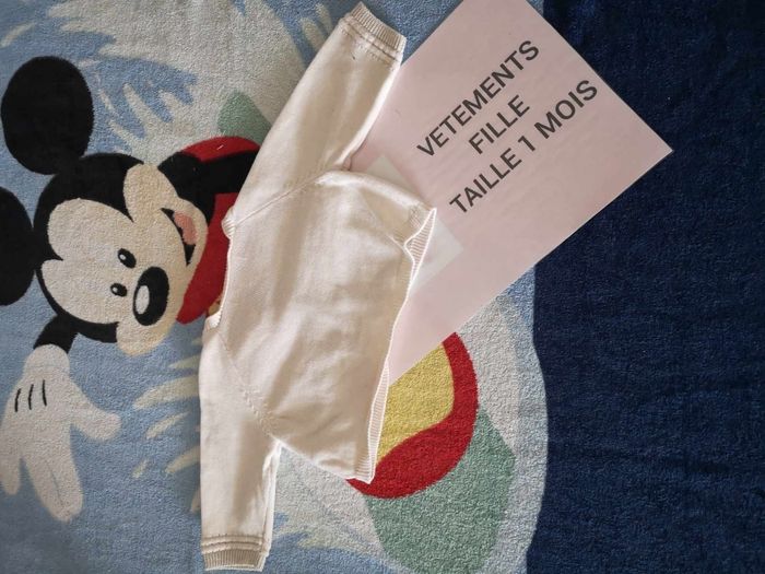 Bonjour-Bonsoir Je met en vente ce gilet taille 1 mois en très bon état , de couleur beige et de marque vertbaudet Possible de faire un lot Tout les vêtements de mon dressing seront laver et repasser avant chaque envoie
