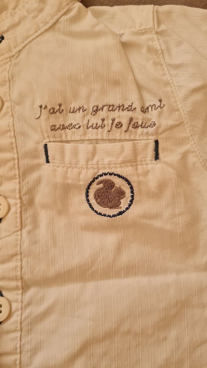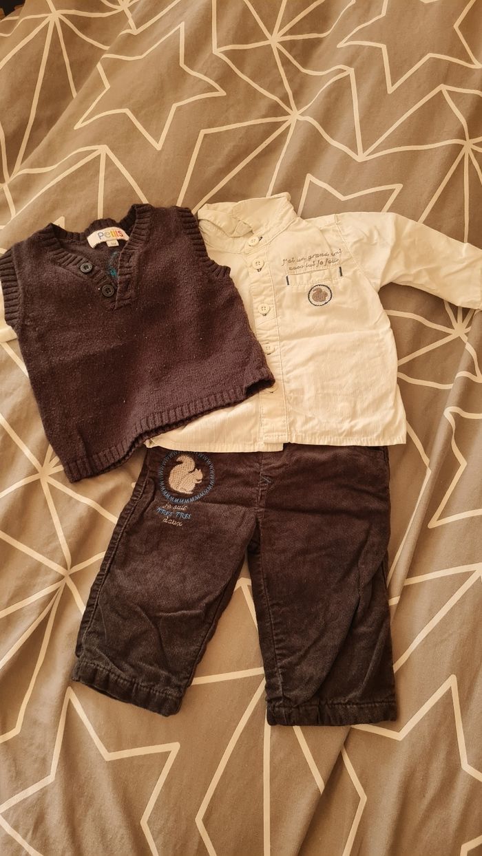 Ensemble pantalon chemise blanche manche longue et pull sans manche Taille 6mois de la marque la compagnie des petits