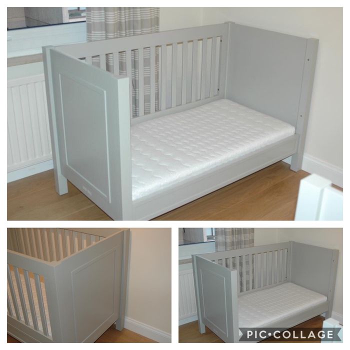 À vendre 250€ sans matelas et déjà démonté Lit Woodwork était couleur gravier repeint en BLANC - Toujours en vente sur le site de Woodwork modèle Will ( bois véritable et pas plaqué) Parfait état Évolutif 3 Hauteurs de couchage réglable Taille US matelas 70 X 140 de 0 à 6 ans Évolutif on peut enlever 1 ou 2 côtés en barreaux Valeur neuf 760€ Le sommier est réglable en 3 hauteurs. Il est possible d’enlever un côté et ainsi avoir un lit banquette. Les deux côtés peuvent être retirés pour proposer une version junior. Il s’intègre aussi bien dans une chambre bébé que dans un univers junior. À retirer à Woluwé Saint Lambert Belgium Pas de livraison