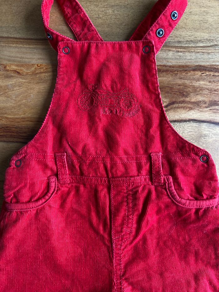 Salopette en velours Rouge motif moto en haut Haut comme trois pomme 6-9 mois