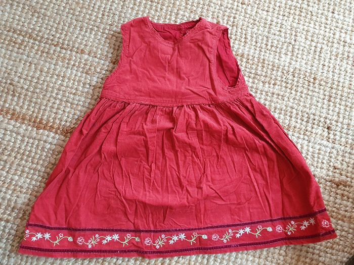 Robe type velour côtelé fin rouge.