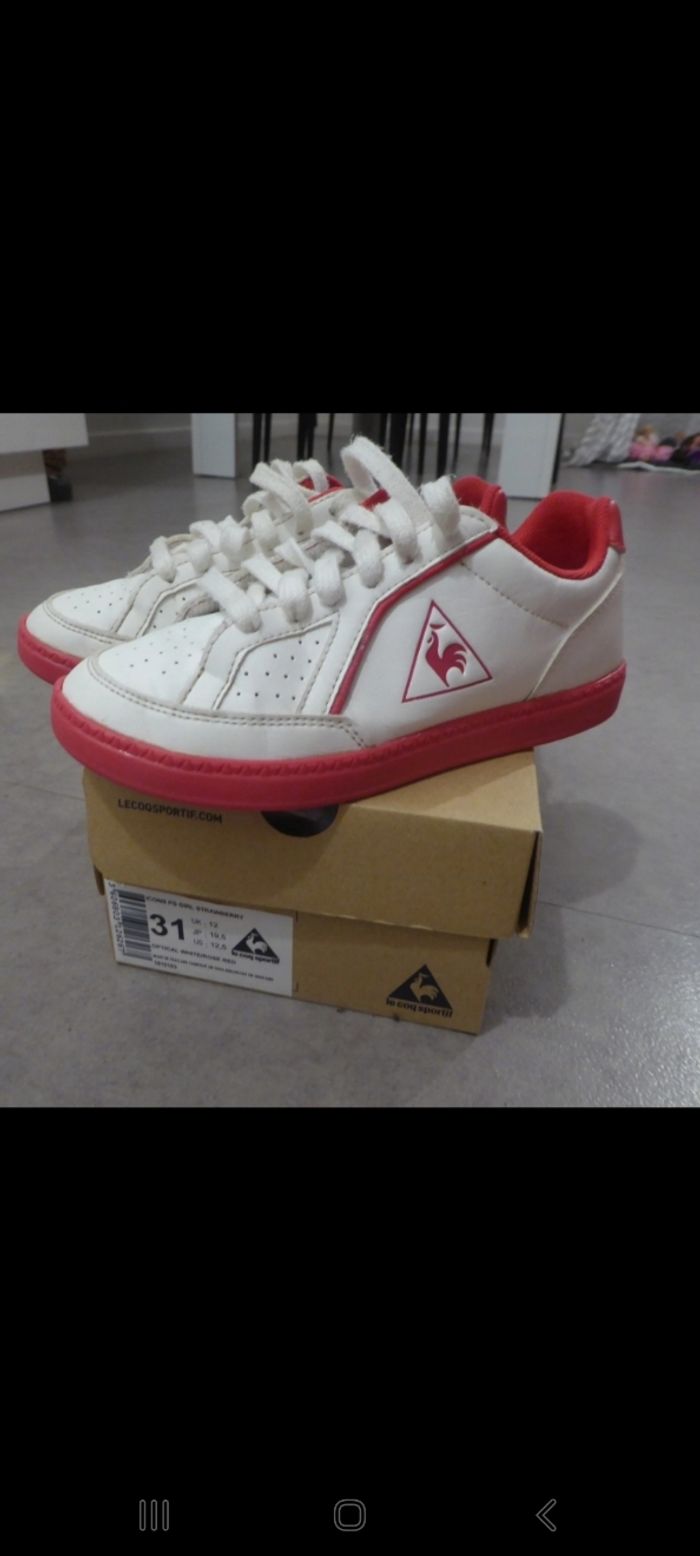 Baskets fille blanc/rose  Le coq sportif - pointure 31 - photo numéro 1