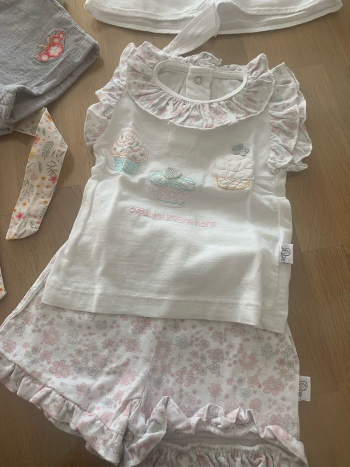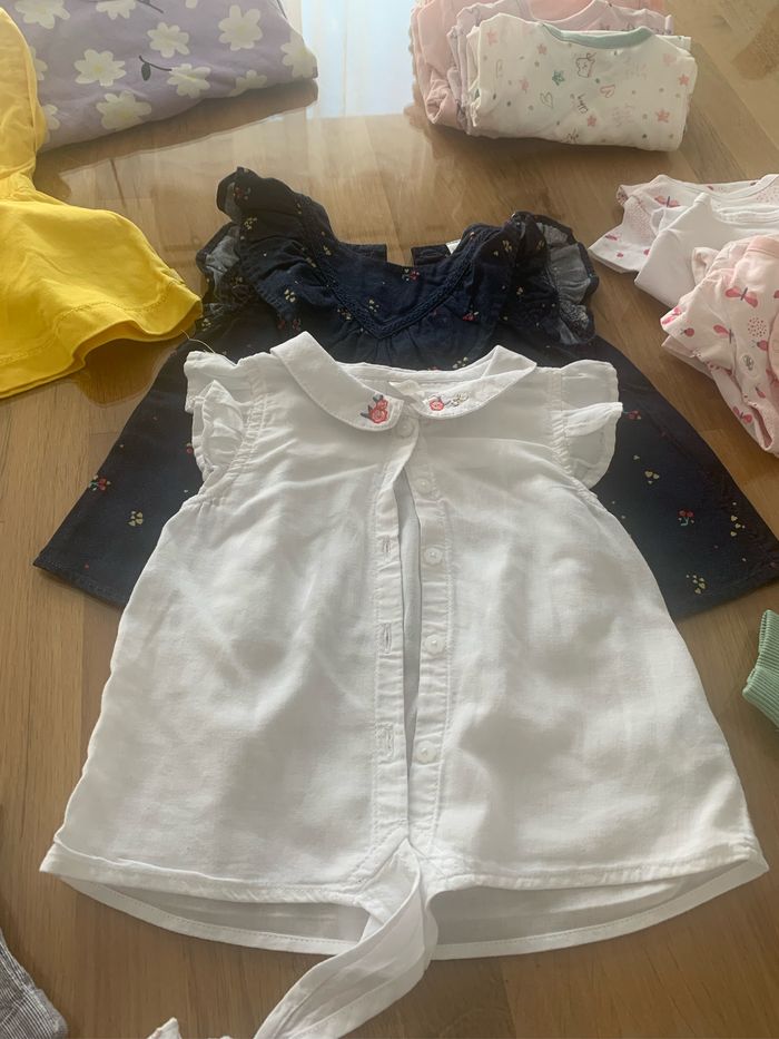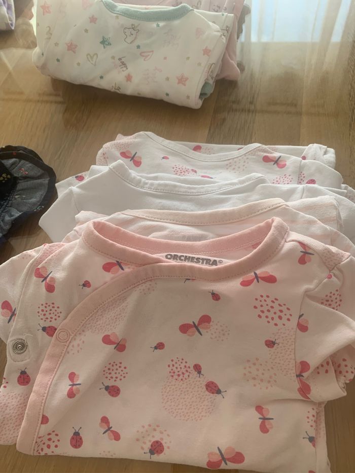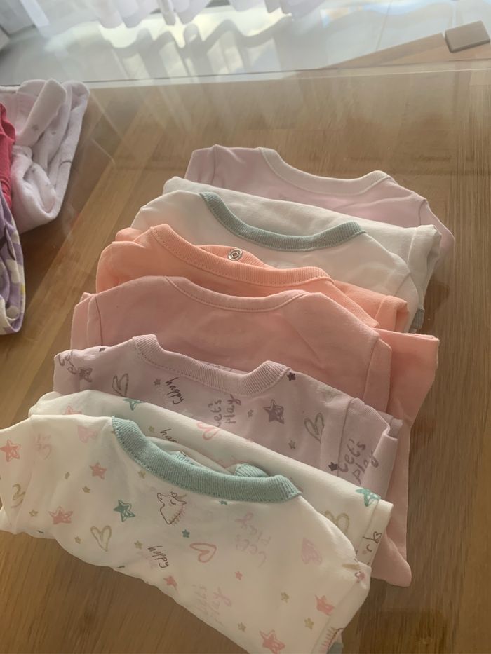 5 robes 4 tuniques 5 bas 3 shorts 3 pyjamas 6 bodys manches longues 4 bodys manches courtes 1 ensemble 2 hauts manches courtes 3 hauts manches longues