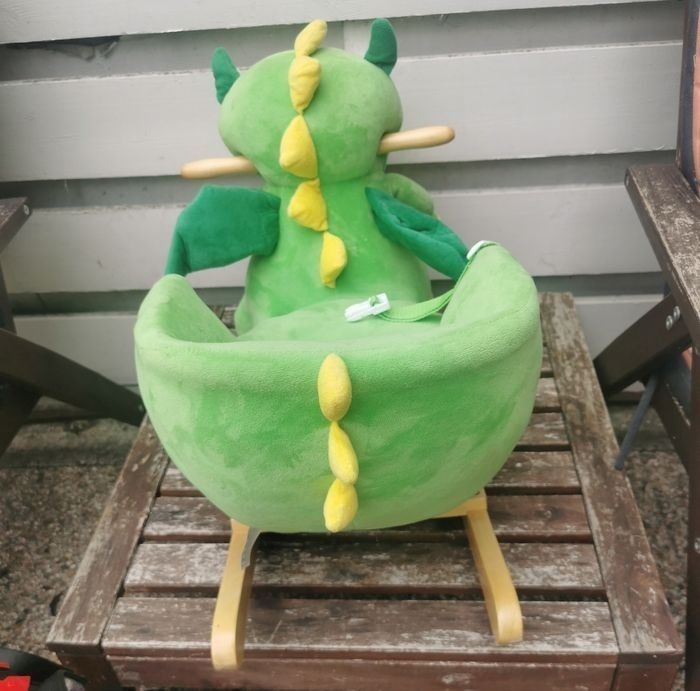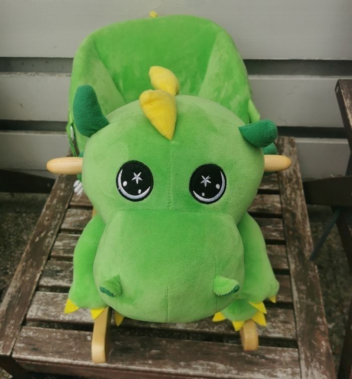 Dinosaure à bascule, quand on appuie sur son oreille il fait le bruit du dinosaure. Avec sa ceinture sécurisante. ‼️En main propre (Gironde)