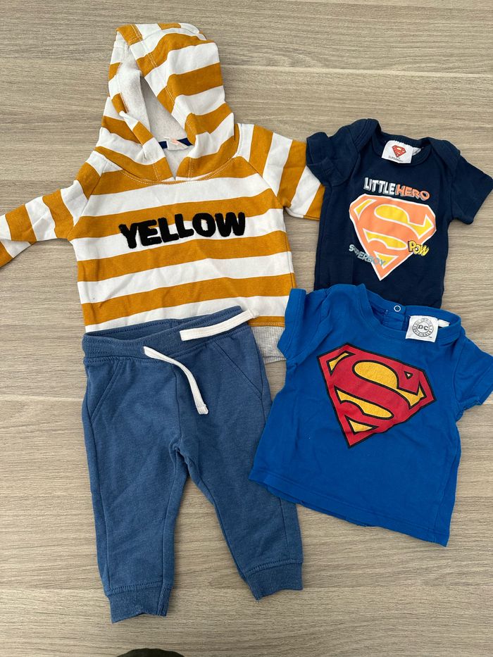 Qui comprend - un enseble jogging avec sweet à capuche ( HEMA) -1 body super man -un teeshirt super man