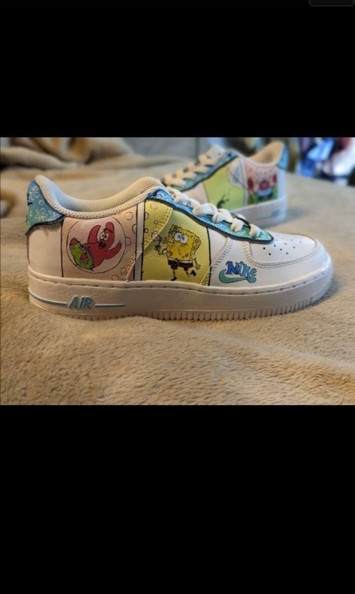 ! Customisation à la demande ! Bonjour :) Peinture sur demande avec de la peinture professionnelle Angelus de qualité qui résiste à l'eau Vous m'envoyez votre paire ou je la fournis :) Uniquement paire en cuir ou simili-cuir comme nike air force one, Jordans, vans en cuir, adidas san smith,... ! Prix pour la peinture uniquement ! Custom enfant ; 45 eur Custom adulte ; 70 eur Sur tous thèmes avec une préférence pour les dessins animés et disneys ( reine des neige, toy story, bob l'éponge, mickey, dumbo, winnie l'ourson, là-haut,...) Plus d'infos en mp ou sur mes réseaux ☺️ Facebook : Cust Art Instagram ; Cust'art5