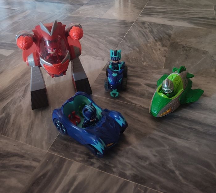 Quatre véhicules et figurines pyjamask