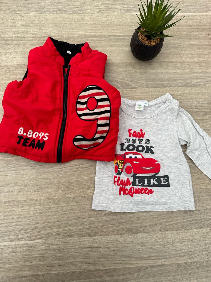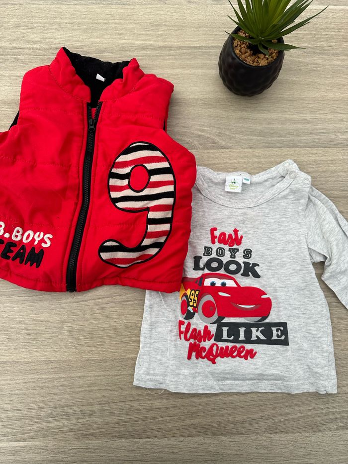 En très bon état Une doudoune sans manches et un tee shirt a manches longues disney cars