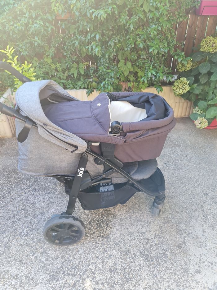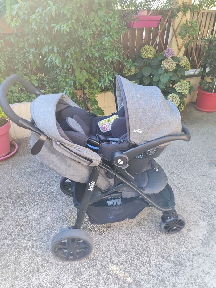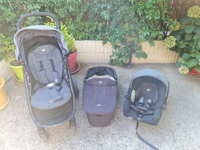 Je vends ma pousette trio Joie, La pousette a des traces d'usures qu'on peut apercevoir sur les photos mais le cosy et la nacelle sont en bon état servi seulement les premiers mois. Un habillage de pluie et aussi vendu avec la pousette.