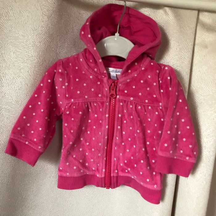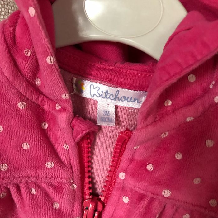 Gilet à capuche en velours rose à pois 76% coton 24% polyester Taille 3 mois 60 cm kitchoun