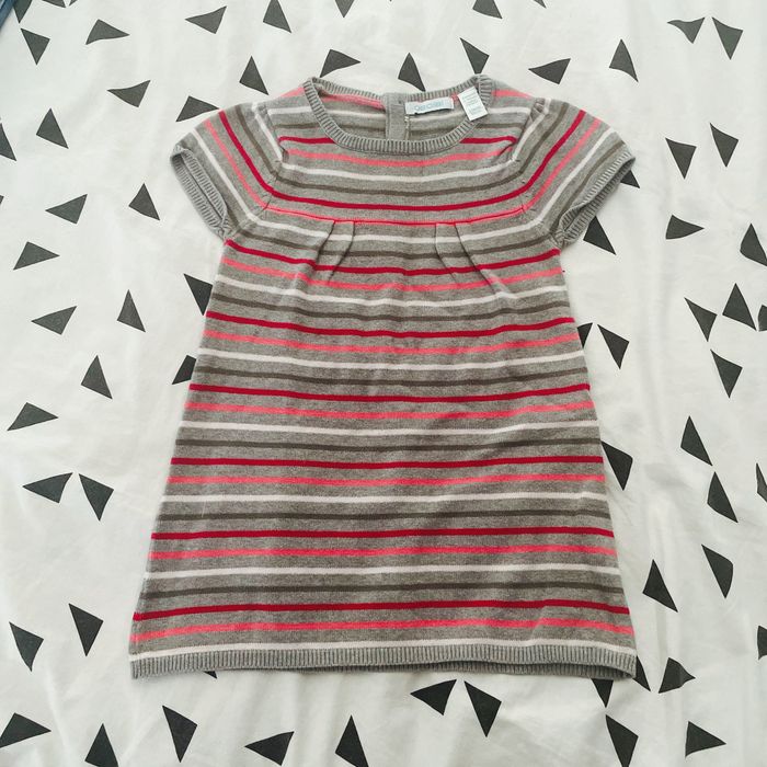 Robe pull Fille 23 mois 86 cm Obaïbi Bon état Grise avec touche de roses