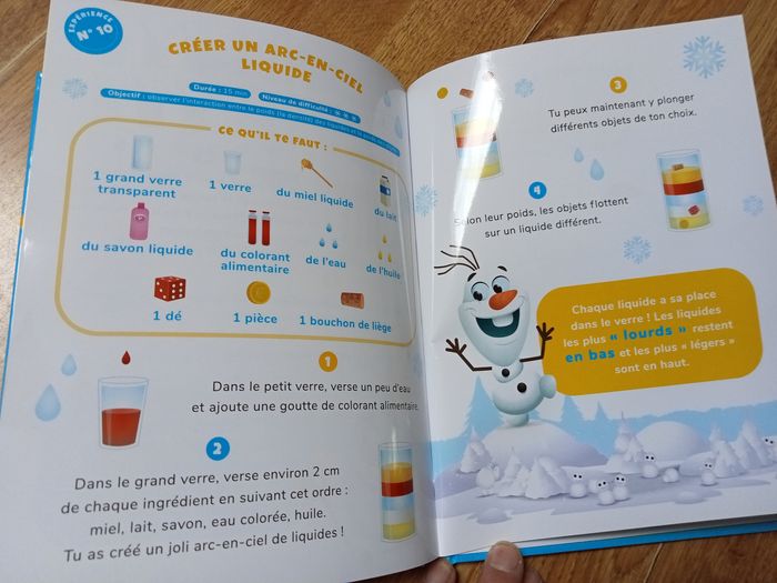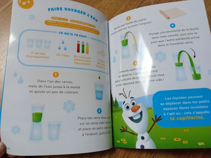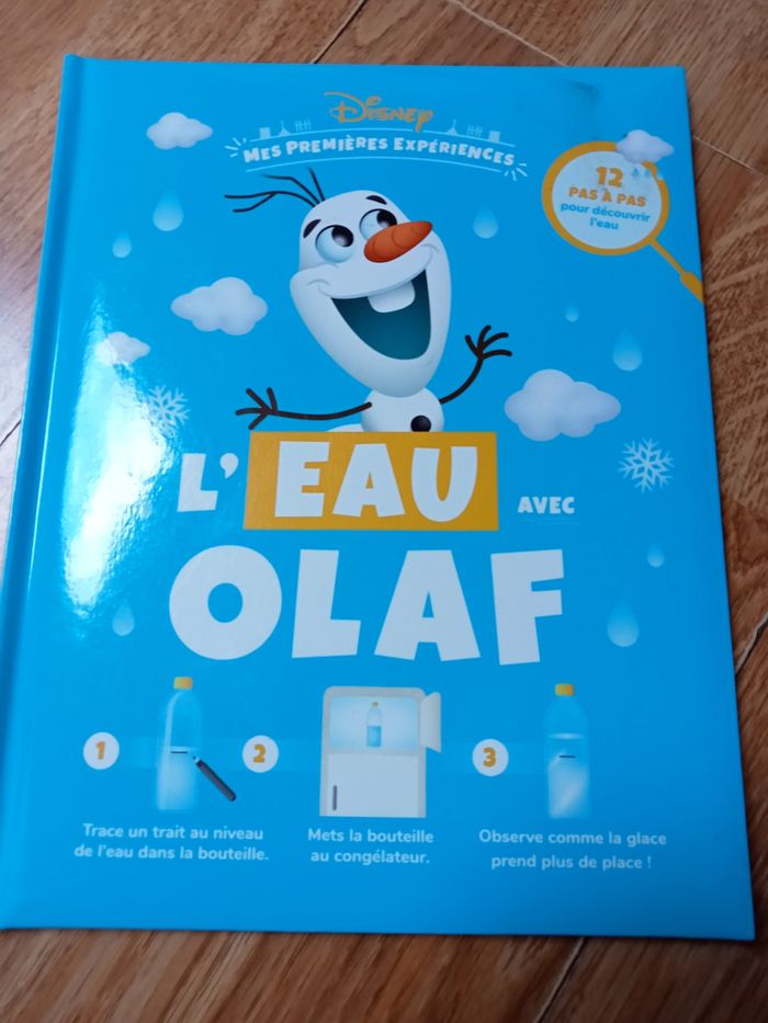 Livre d'expériences concernant l'eau Tout comprendre grâce à Olaf A partir de 3 ans Pages plastifiées donc plus solides Neuf