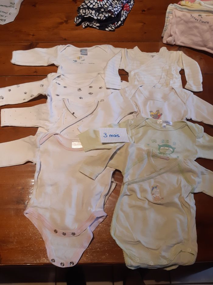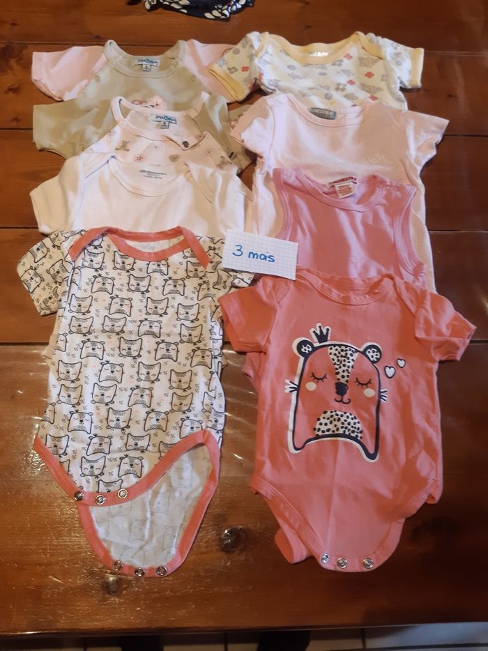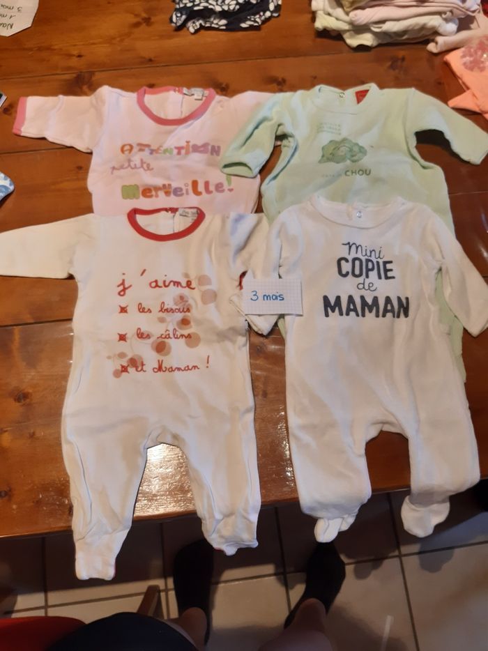 Vend vêtements 3 mois. Body, pyjama Dites-moi ce qui vous intéresse vente en lot de préférence à petit prix Prix de 50cts à 3€ Prix du lot 40€
