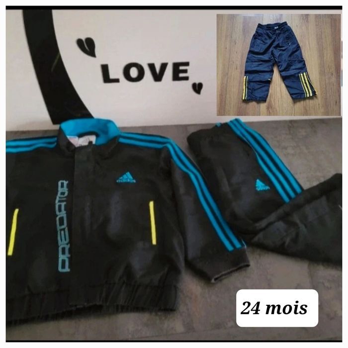 1 Joli survêtement Adidas predator (Veste + pantalon) Taille 2ans Très bon etat 1 bas jogging plus fin jaune Envoi rapide #monocean_taille24mois