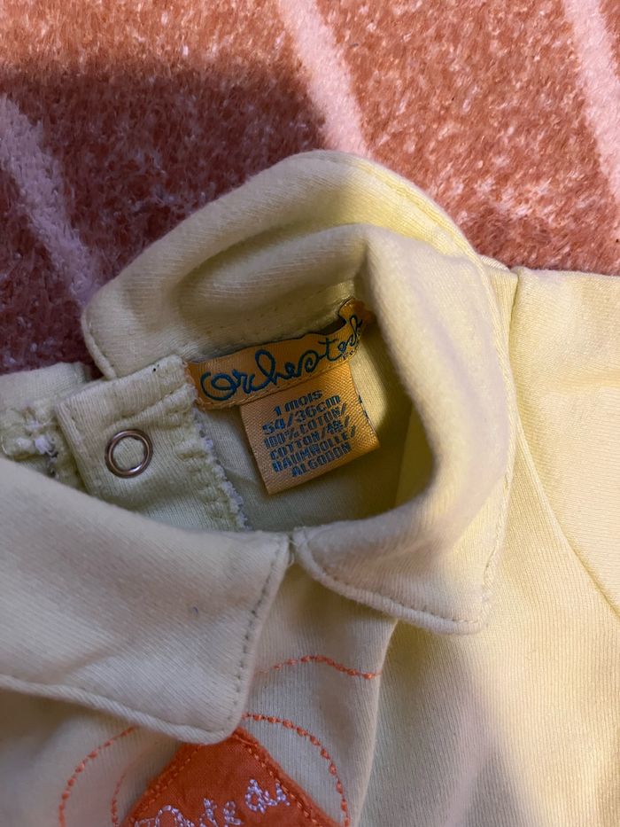 Pyjama Orchestra naissance Pyjama Orchestra 1 mois Pyjama l’enfant do (taille non indiqué mais correspond à du 1 mois) Pull Orchestra 1 mois Pyjama + cape de bain à pression taille 1 mois