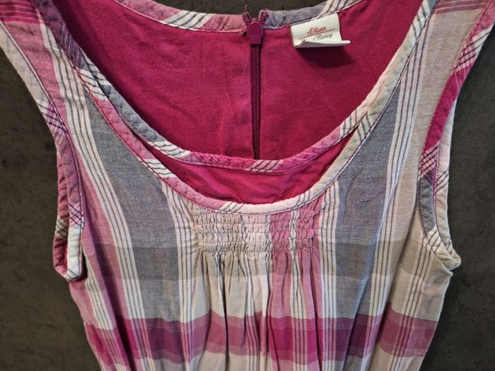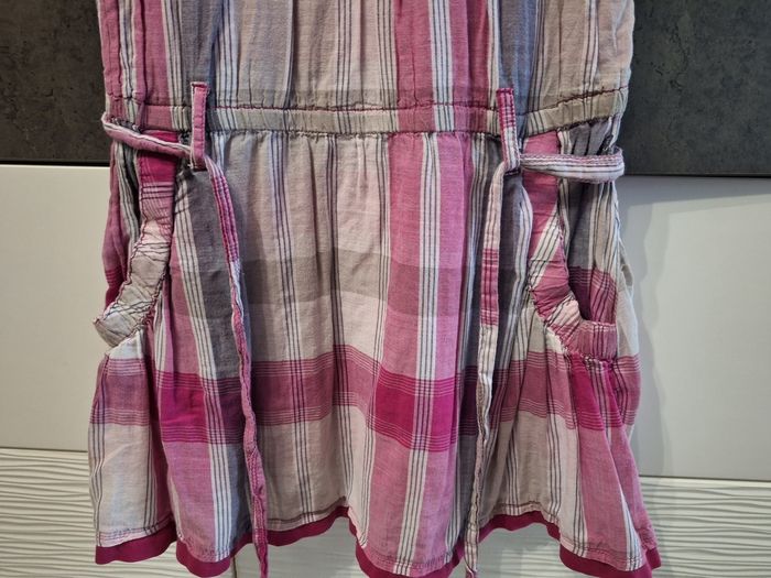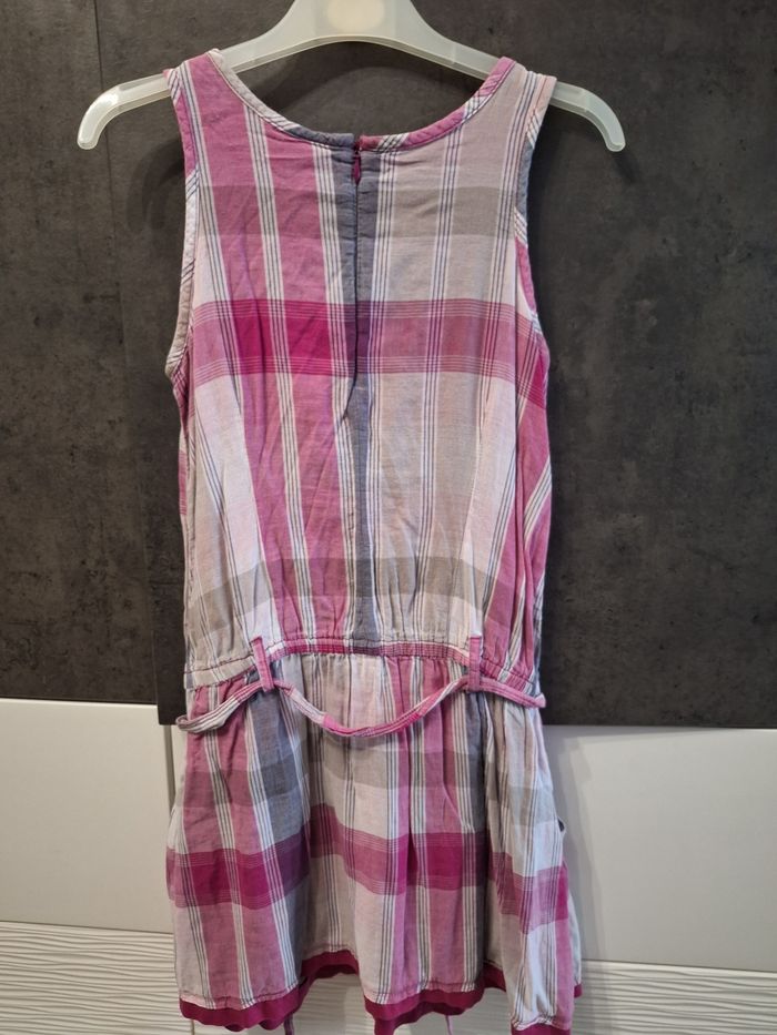 Jolie robe sans manches motif carreaux gris et rose, 2 poches bas devant, ceinture à nouer, doublée, taille 12 ans, marque S.Oliver, peu portée en très bon état