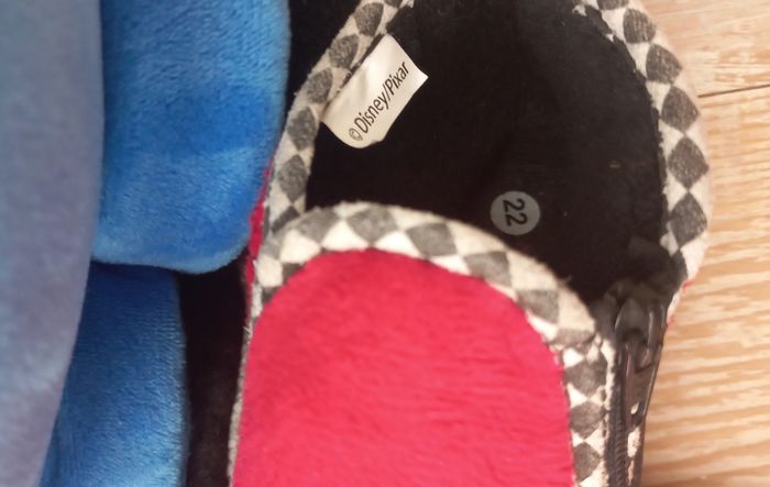 Chaussons cars bébé Marque : Disney×Pixar Taille : 22 Couleur(s) : Rouge, Noir Dessin(s) : Flash McQUEEN Écriture(s) : " Lightning McQUEEN" Matiere(s) : Polyester État : Très bon état.