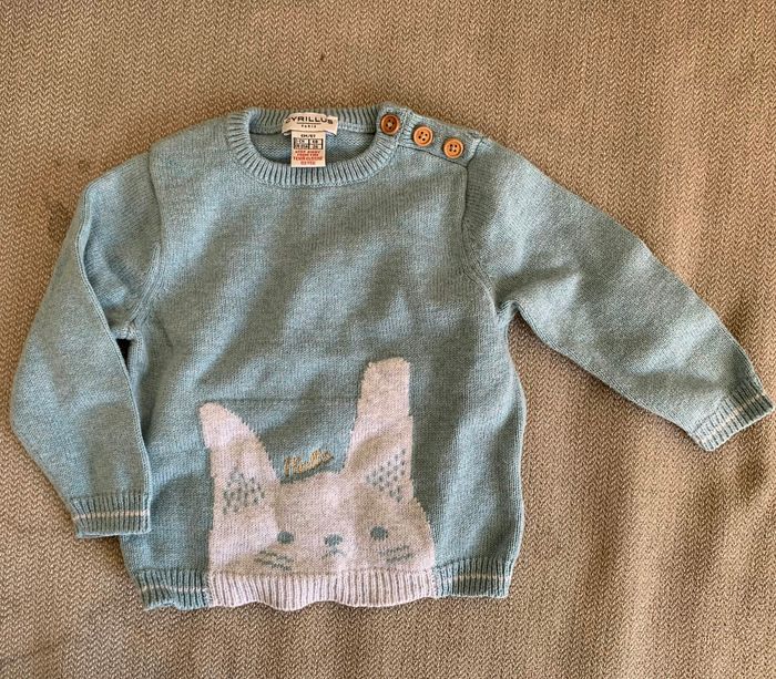 Pull bleu Cyrillus motif lapin 🥰 en excellent état, T6M - 67cm.