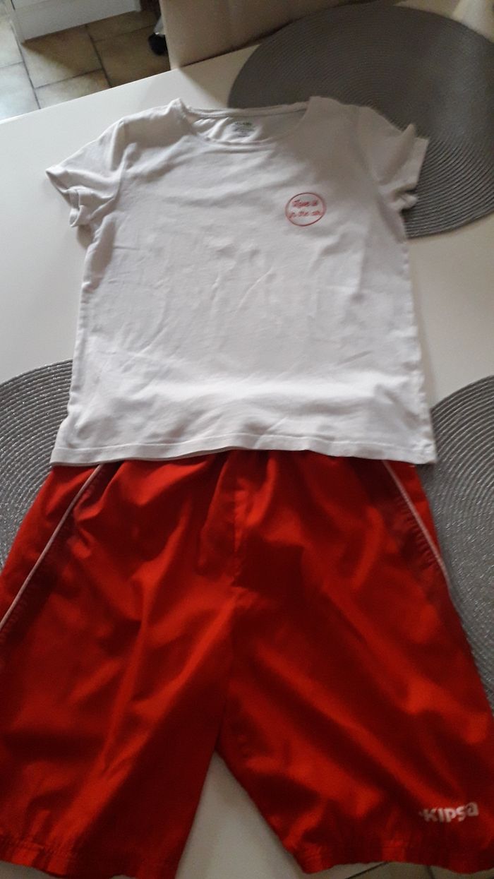 Tshirt blanc Kiabi et bermuda rouge KIPSTA 10 ans