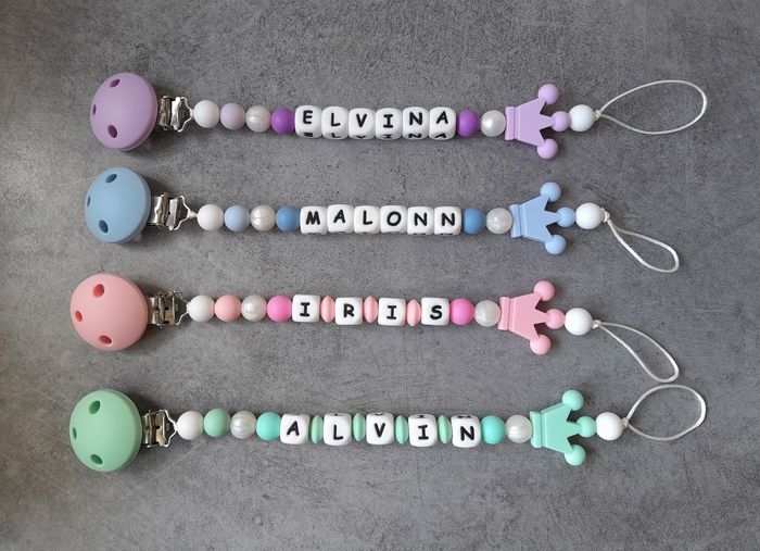 Cette attache sucette est fabriquée avec des perles en silicone alimentaire. Pour les prénoms de plus de 5 lettres, les perles d'espacements ( perles entre les lettres) seront supprimées afin de respecter une longueur de 22cm maximum et éviter tout risque de strangulation. Pour tout autre demande ou personnalisation particulière , n'hésitez pas à me contacter. NB : cet article n'est pas un jouet , il ne doit pas être laissé à l'enfant sans surveillance, et doit être retiré pour la sieste ou la nuit. L'attache peut être nettoyée avec de l'eau et du savon et doit être remplacée dès le premier signe d'usure. Aussi disponible sur mon site www.mamacrea.fr