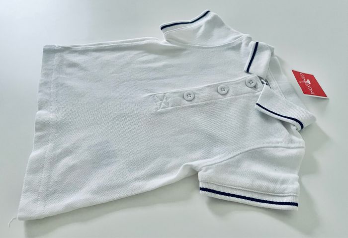 Magnifique polo blanc , taille 3 mois. Marque Tex. Article neuf avec étiquette.