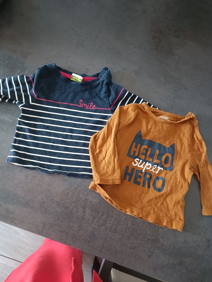 Lot de deux t shirt manches longues Un tape a l'oeil L'autre Kiabi 3 mois Tbe