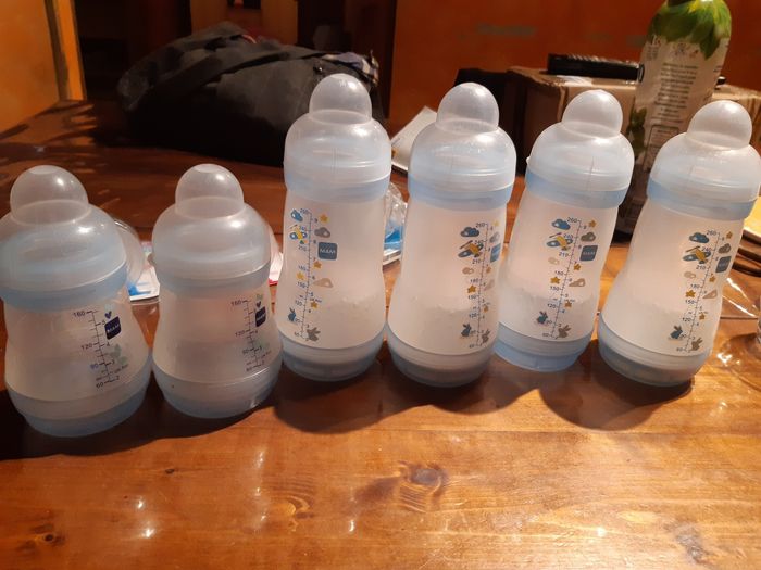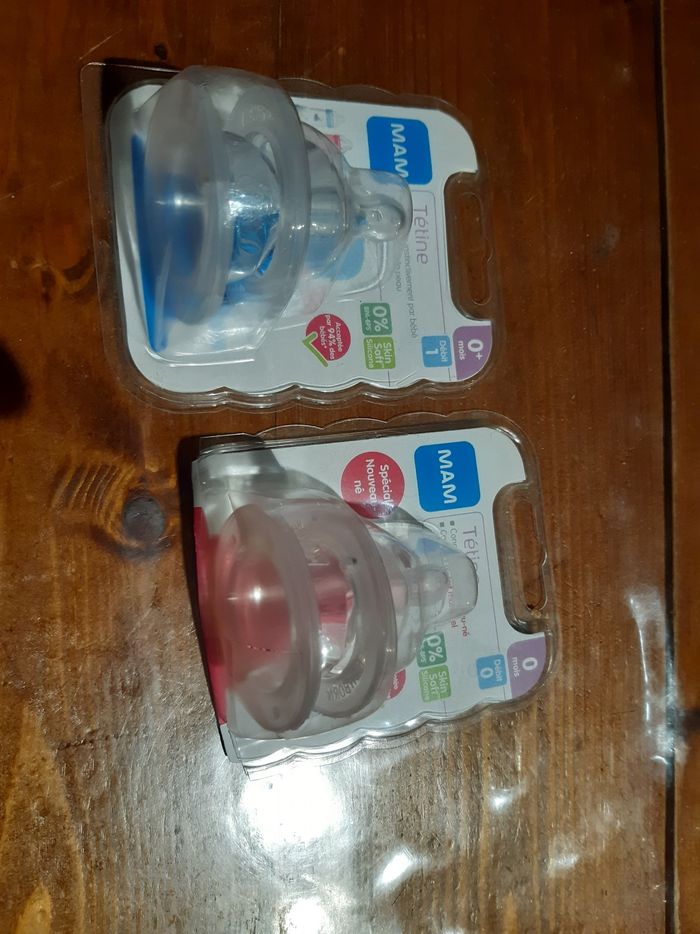 Bonjour je vend 4 biberon mam bleu 260ml 10€ les 4 2 biberon bleu 160ml 4€les 2 2 biberons rose 160 mlc4€ les 2 Sans valve anti colique sans tétine 2 tétine débit 0 ( emballage ouvert mais pris que 2 ou 3 bib) 2€ 2 tétine débit 1 neuf 2€ 2 tétine bébé confort juste testé débit 1-2-3 a 2€ Ou 22€ le tout