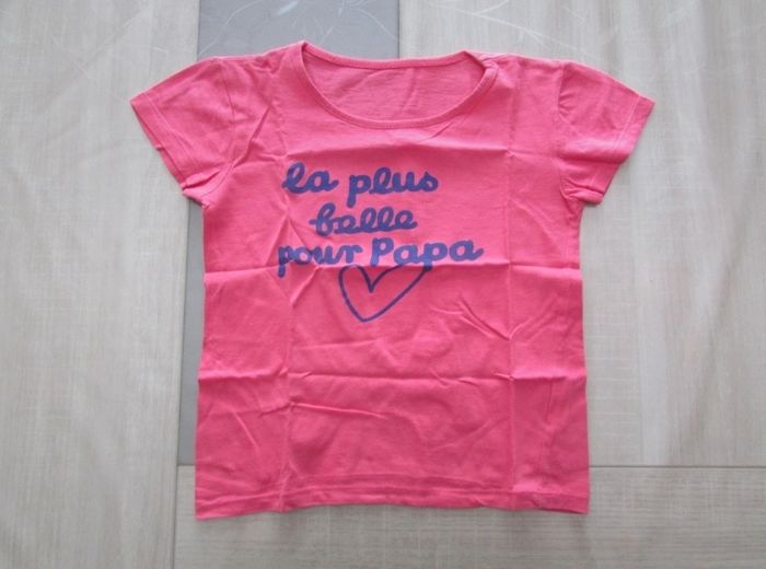 T-shirt à manches courtes avec print "La plus belle pour Papa", en excellent état. Taille: 5 ans d'autres vêtements ici #ysatis13fille5ans N'hésitez pas à faire un lot pour profiter des remises activées #tshirt #belle #papa #rose #fille #5ans