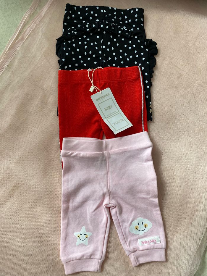 Lot de 13 vêtements bébé fille Neuf avec étiquette Nouveau né jusqu’à 1 mois marque orchestra 5pantalon 4 bodies 2 pull 2 pyjama dor bien nouveau né État neuf avec étiquette