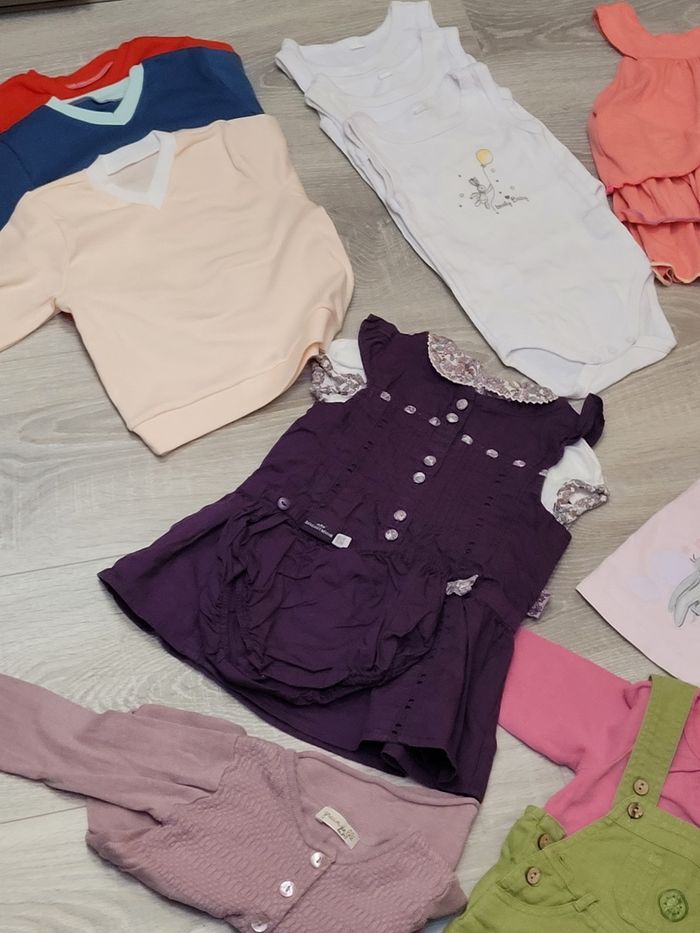 Lot pyjamas robes bloomers tuniques leggings t-shirt mc et ml 3 mois fille été et mi saison automne sergent major petit bateau orchestra gap natalys disney tissaia kitchoun kimbaloo marese grain de blé Articles en très bon état au satisfaisant voir photo des articles en détail pour plus d´informations marques... Bodys bretelles, tricot, 4 pyjama été, robes été, bloomer, combishort.... tous les articles de la photo #jennyaub3mois Possibilité de scinder pour petit prix