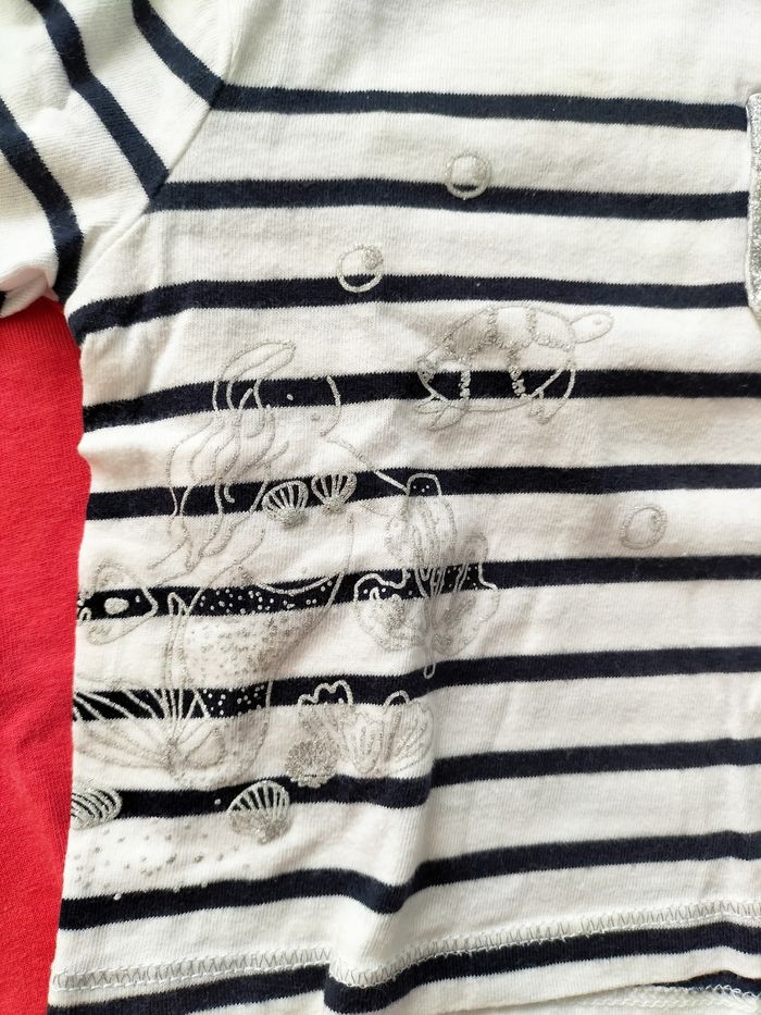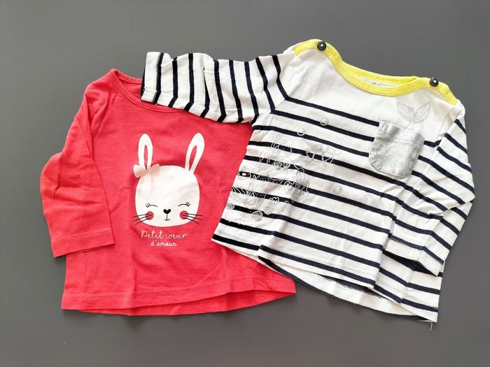 Manches longues. Portés plusieurs fois mais reste en bon état . Le rayé marque Z grain de blé et le corail sans marque