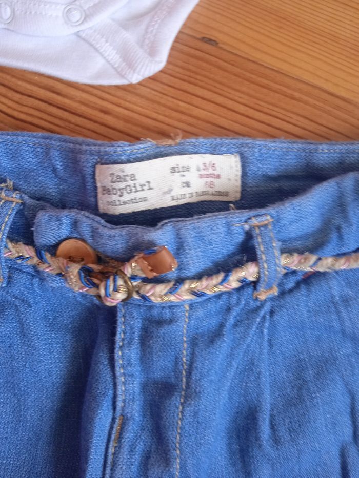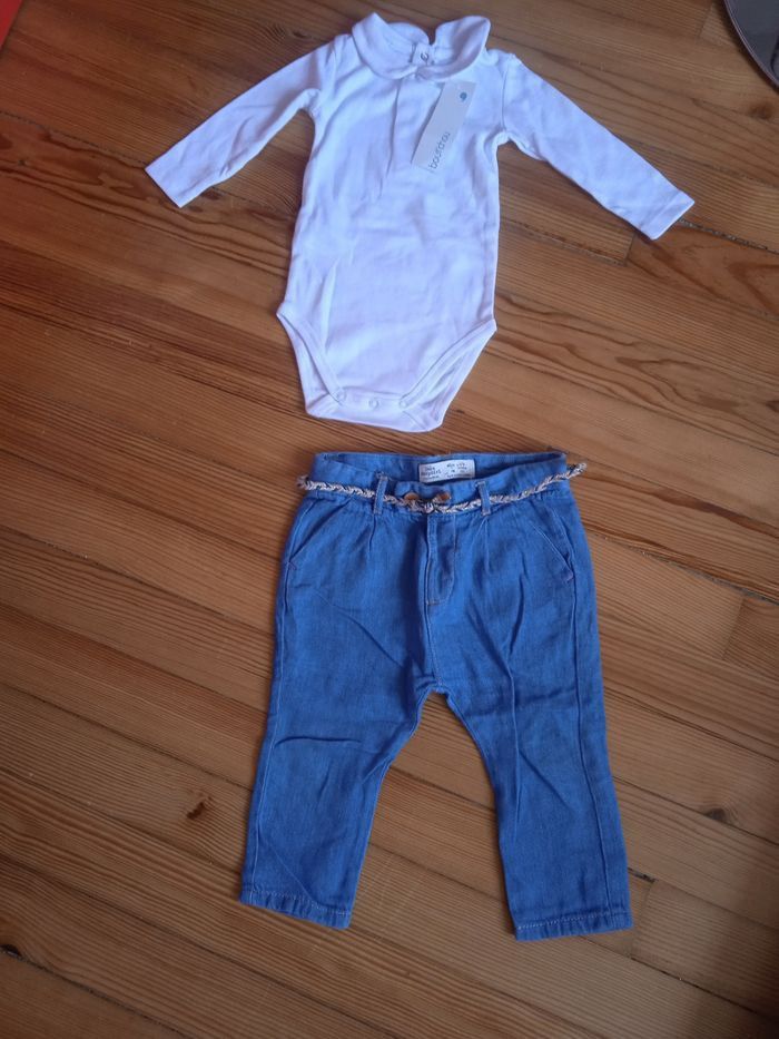 Un pantalon jean Zara 3/6 mois et un bodie blanc avec col neuf avec étiquette bout'chou 6 mois