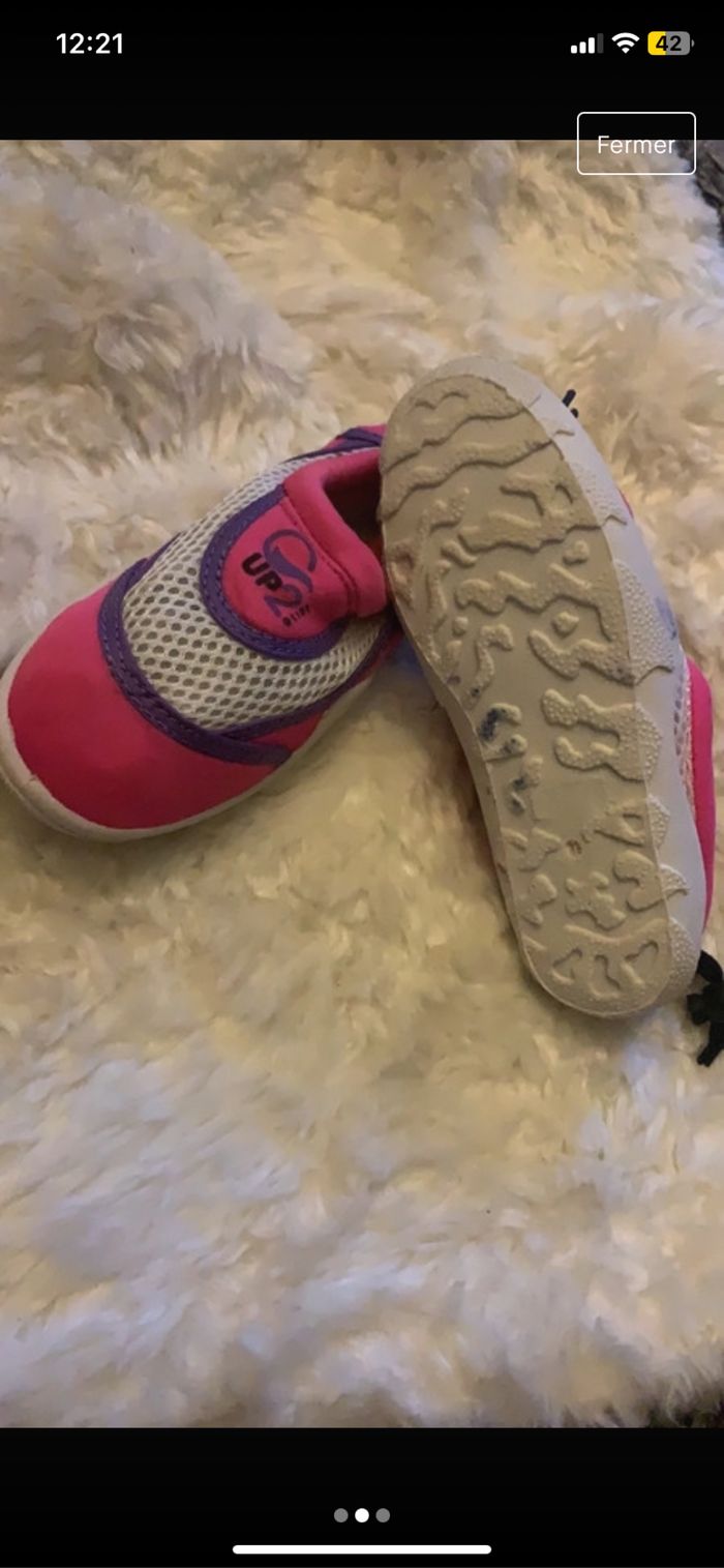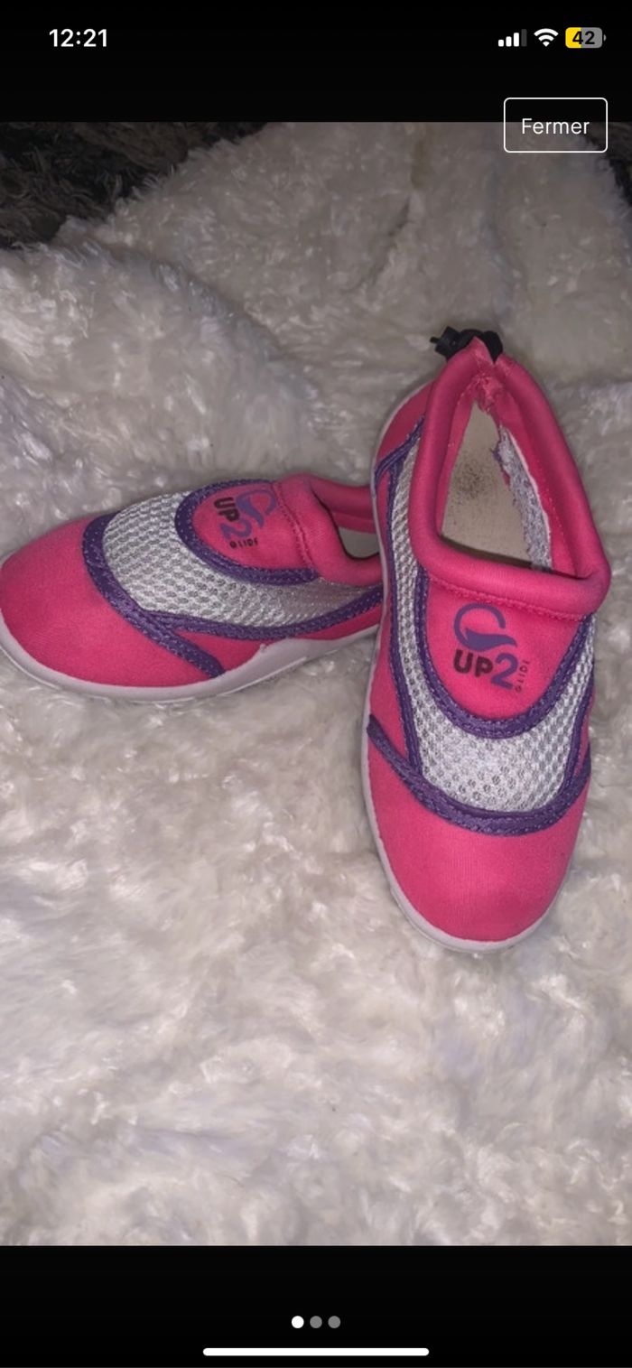 Chaussures aquatiques fille Le numéro s’est effacé, je vous donne donc la mesure de la chaussure , afin de comparer avec les votres Mesure : 20,5cm ( d’après mes recherches sur internet cela correspond à pointure 32/33