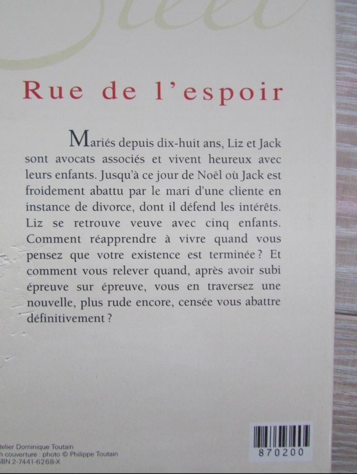 Livre "Rue de l'espoir" de Danielle Steel en bon état car la couverture est abîmée. D'autres livres ici #ysatis13livres N'hésitez pas à faire un lot pour profiter des remises activées #livre #drame #rue #espoir #danielle #steel #editions #france #loisirs