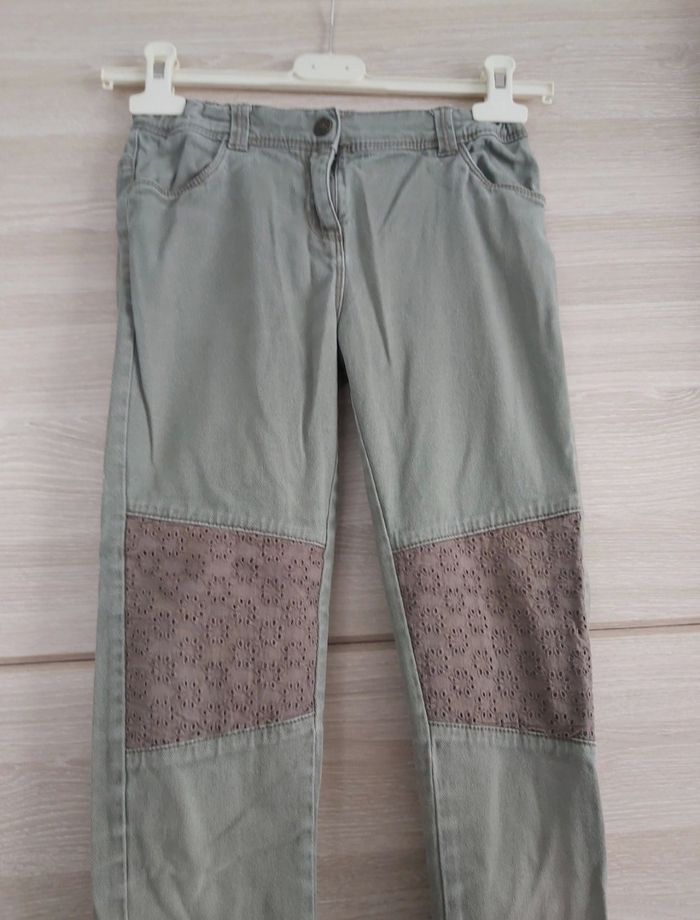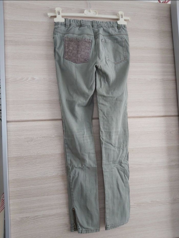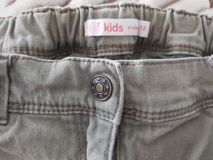 Pantalon jeans slim kaki, fantaisie aux genoux et poche arrière Gémo taille 12 ans