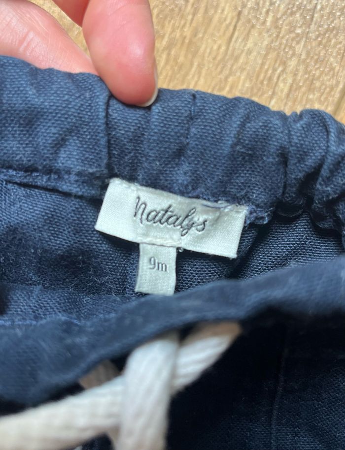 Pantalon 9 mois bleu marine en très bon état Marque Natalys Très peu porté Matière coton