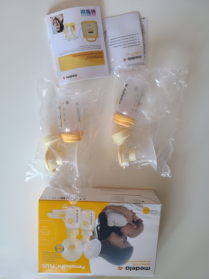Set double pompe de la marque Medela avec comme taille de téterelle 24 MM. Très peu servi (2 fois). Vendu avec notice et emballage d'origine.