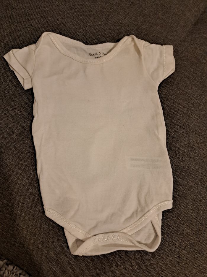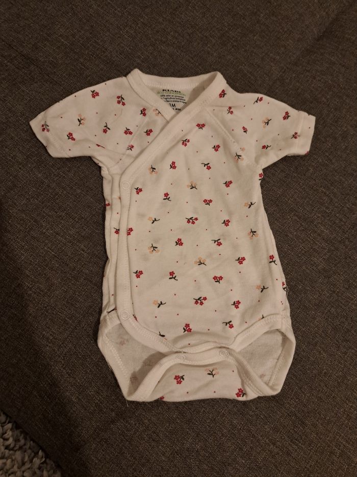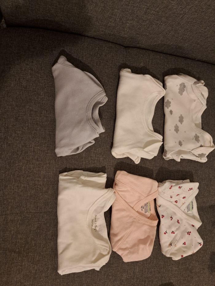 Lot de 6 body taille 1 mois. Jamais porté bebe né en juin. Certains bodies s'ouvrent devant.